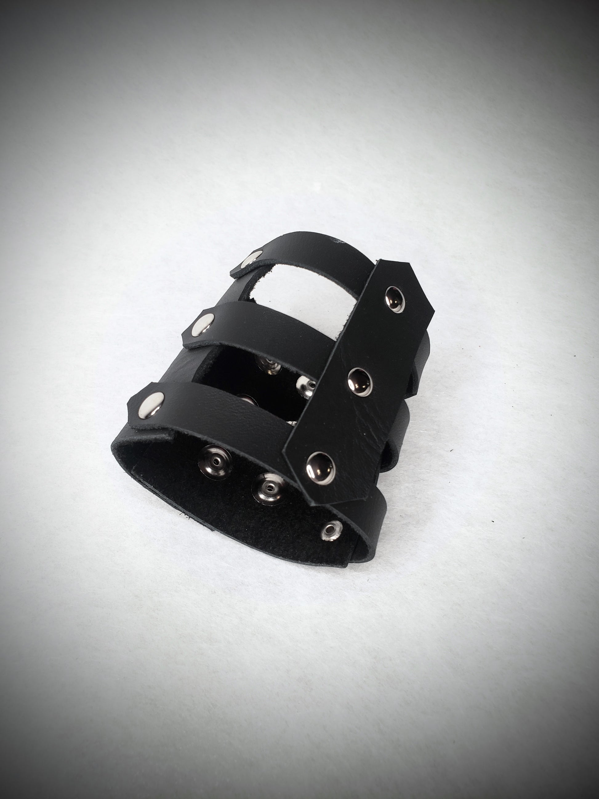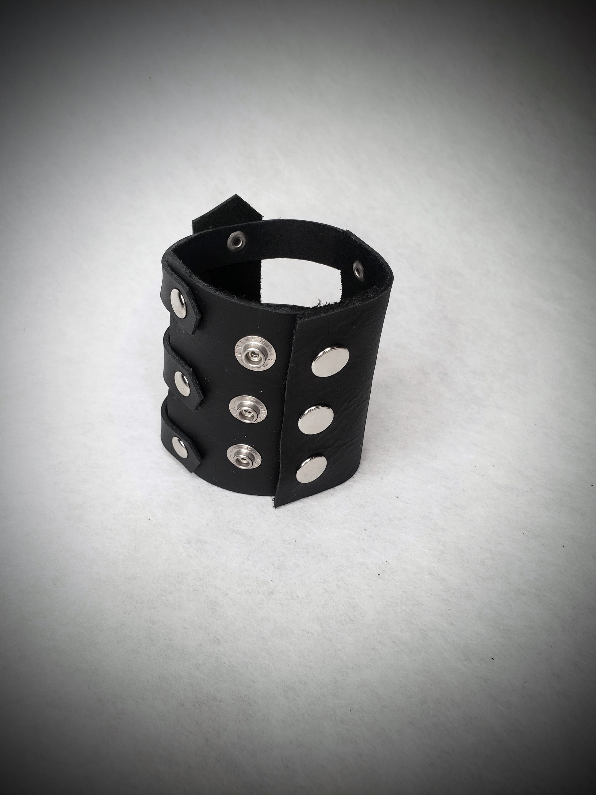 Beautiful 4 oz cowhide leather cuff, handmade with heavy duty snaps and rivets. Inspired by gladiators, this one of a kind and ready to ship piece will make you feel like a warrior. Adjustable for a variety of wrist sizes.
