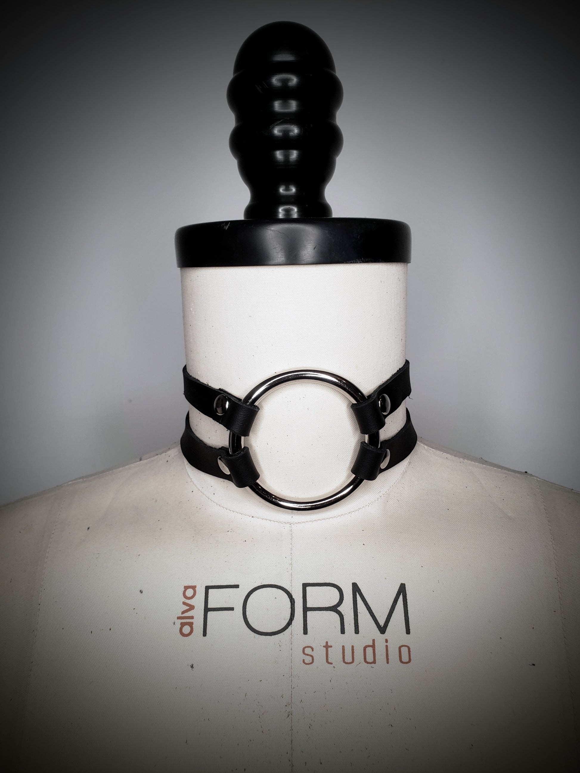 A stunning, yet subtle collar made from handcut 4oz cowhide leather, soft yet structured this collar is comfortable and features a large O ring. High quality snaps and rivets, this piece is adjustable and fits between 12" - 16" neck. This piece is one of a kind and ready to ship.